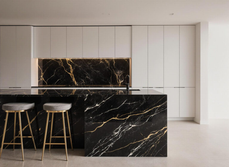 ایده های خلاقانه استفاده از اسلب آشپزخانه در طراحی کانتر، جزیره و دیوار لوکس